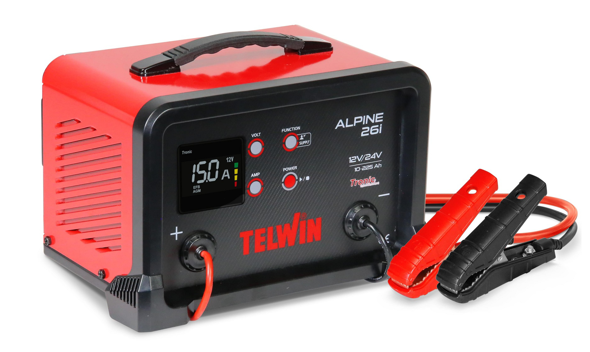 Elektronická nabíjačka Alpine 26 i Telwin 12V/24V s LCD displejom pre elektrolytické, gélové, AGM, MF, PbCa, EFB a Li batérie.